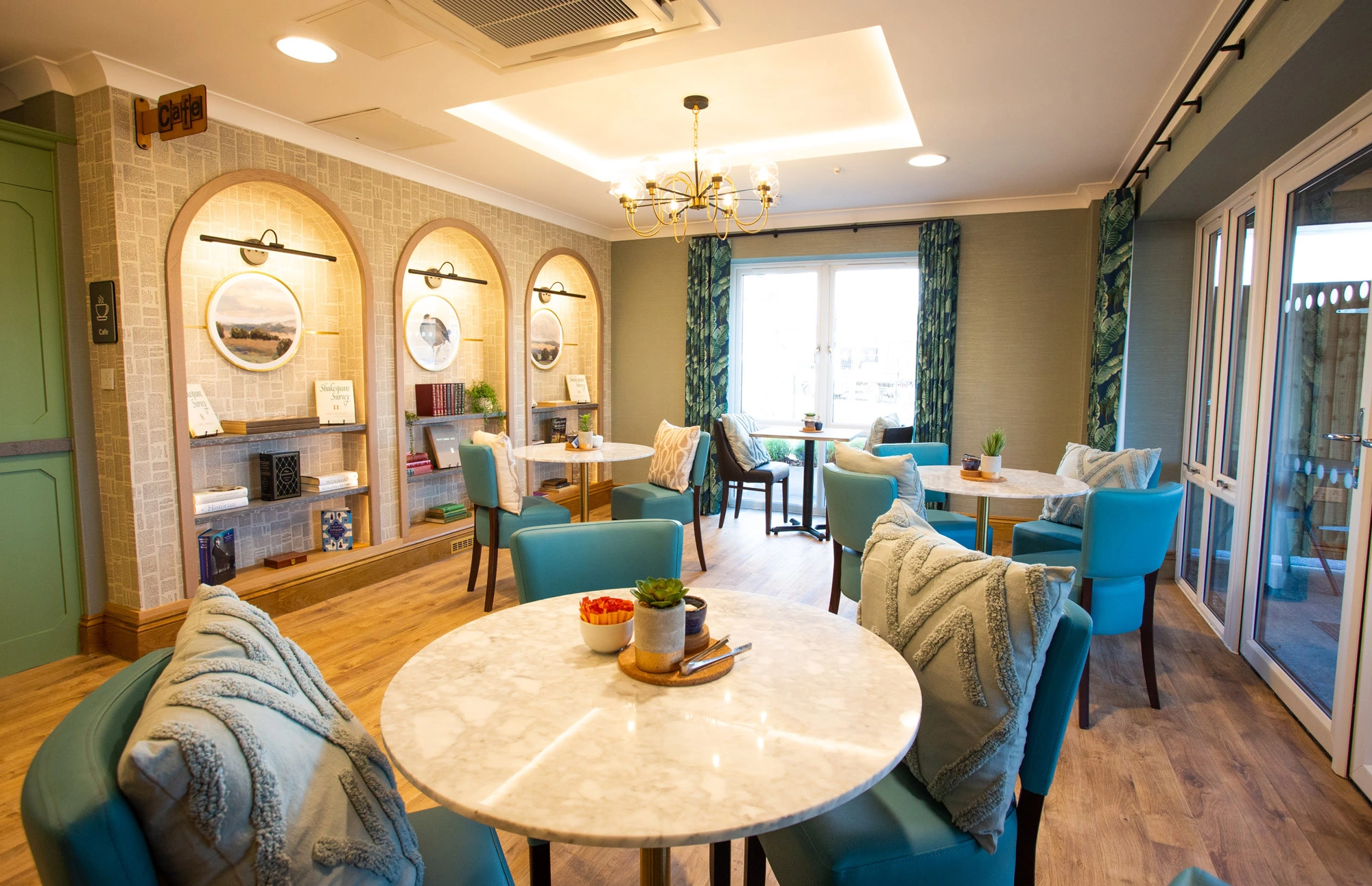 The interior spaces of the home take their inspiration from Bishop Stortford’s rich literary history and include the Reading Room Café, a space where residents, their friends and their families can gather together and share warmth and laughter over a delicious array of coffee, tea and cake.